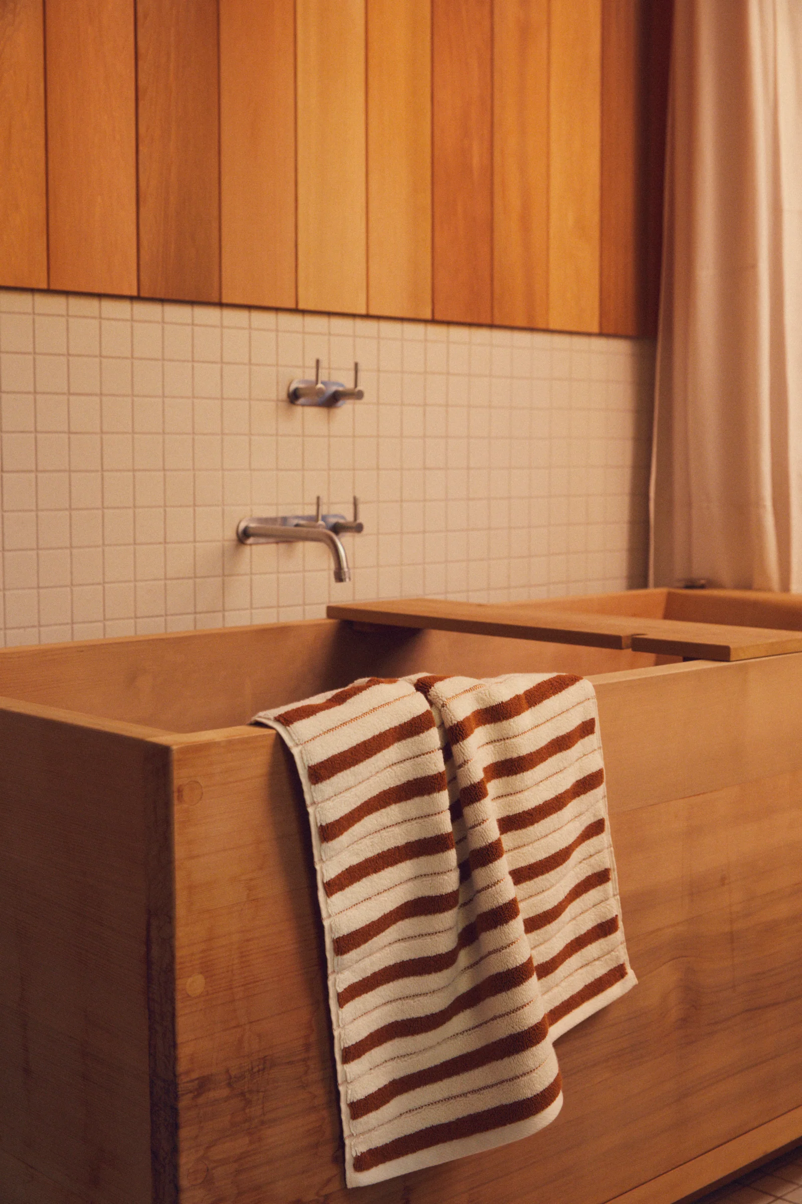 100% Organic Cotton bath mat with a luxuriously soft underfoot. Defined by the pairing of a classic stripe and embroidered gridded check, the Echo colour-way is warm yet fresh, conjuring familiarity in the bathing space.