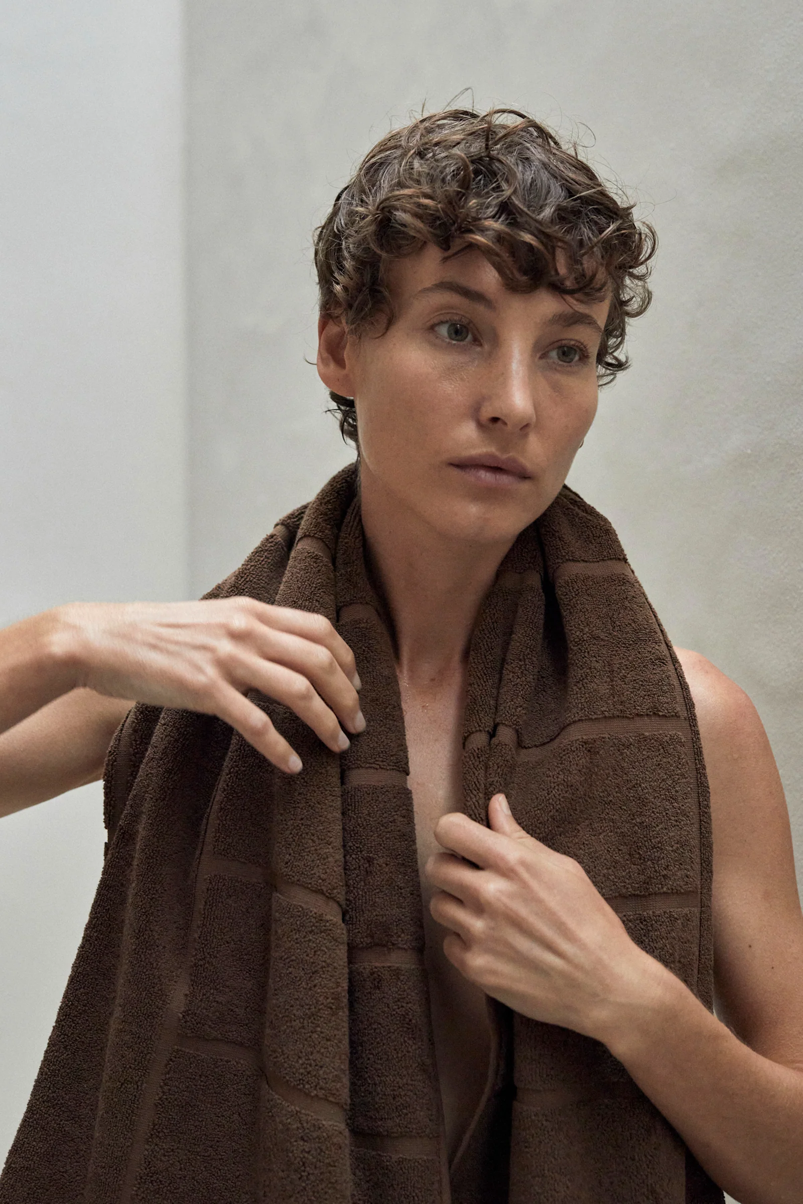 100% Organic Cotton bath towel with a luxuriously soft handle. The jacquard gate motif displays a simple symmetry, consistent with current BAINA designs. This warm hue will enrich your bathroom or ensuite with a feeling of luxe and heritage.