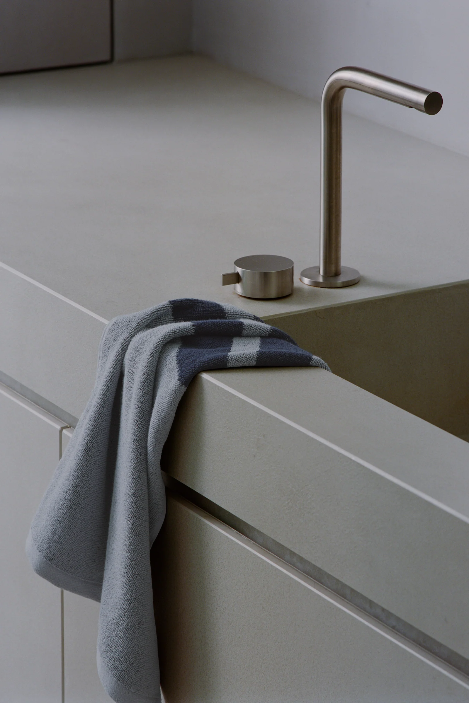 100% Organic Cotton hand towel. Luxuriously soft, Hansen features a bold design, exploring BAINA’s interpretation of the traditional stripe. The pairing of Ink & Sky, in two diagonal lines, conveys the feeling of movement. Features a reversible colour-way.