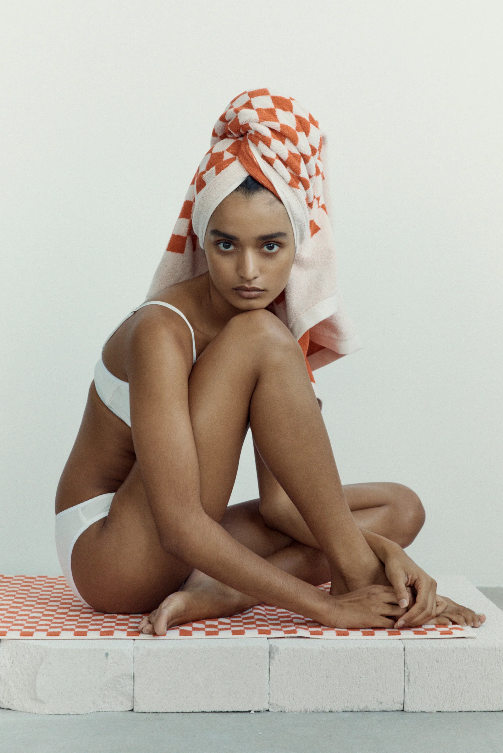 100% Organic Cotton pool towel or beach towel. This playful towel in checkerboard print is synonymous with the BAINA brand, and features a reversible colour-way. Contrasting against Ecru, the bright Paloma Sun checkerboard makes a statement in any bathroom or on any beach.
