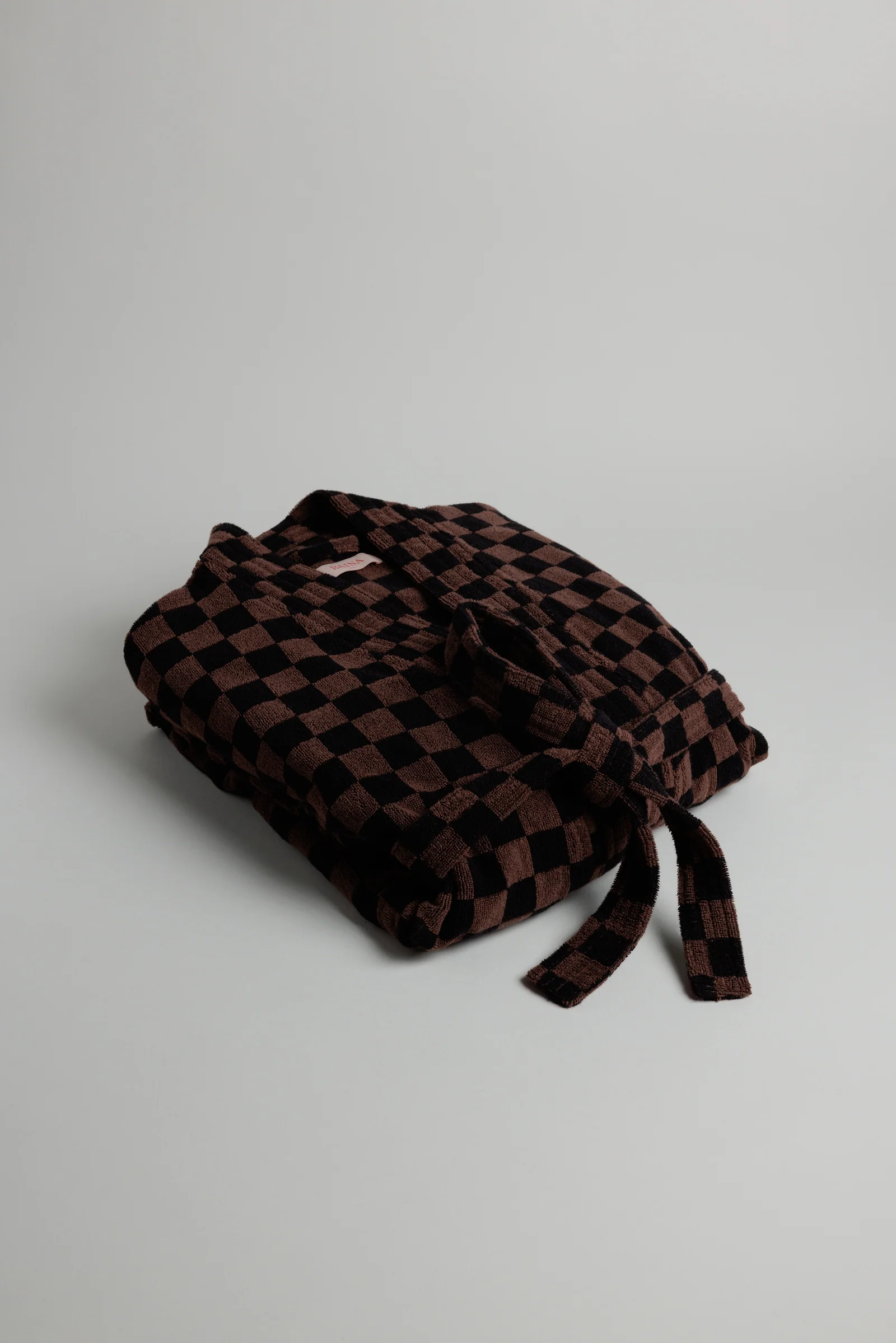 The Sulis Bath Robe is designed to extend the bathing ritual. In BAINA’s signature Tabac & Noir checkerboard, it evokes a feeling of luxe and nostalgia. Crafted in soft terry towelling, the Sulis has a highly considered design for a neat look and relaxed feel.