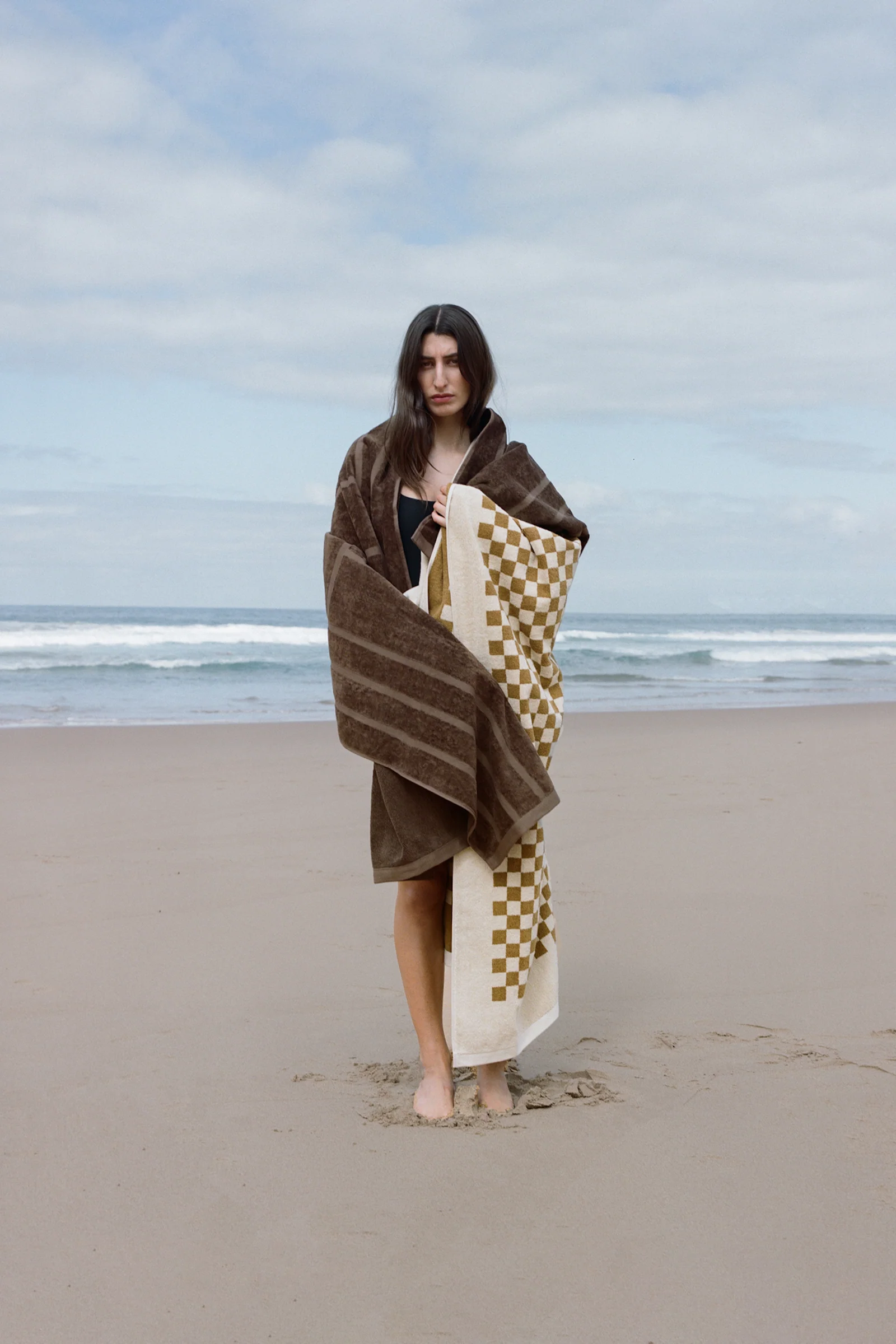 100% Organic Cotton pool towel. The jacquard gate motif displays a simple symmetry, consistent with current BAINA designs. The cut pile velour only intensifies the luxe Tabac hue, sending us into a time warp somewhere off the Italian coast, circa 1972.